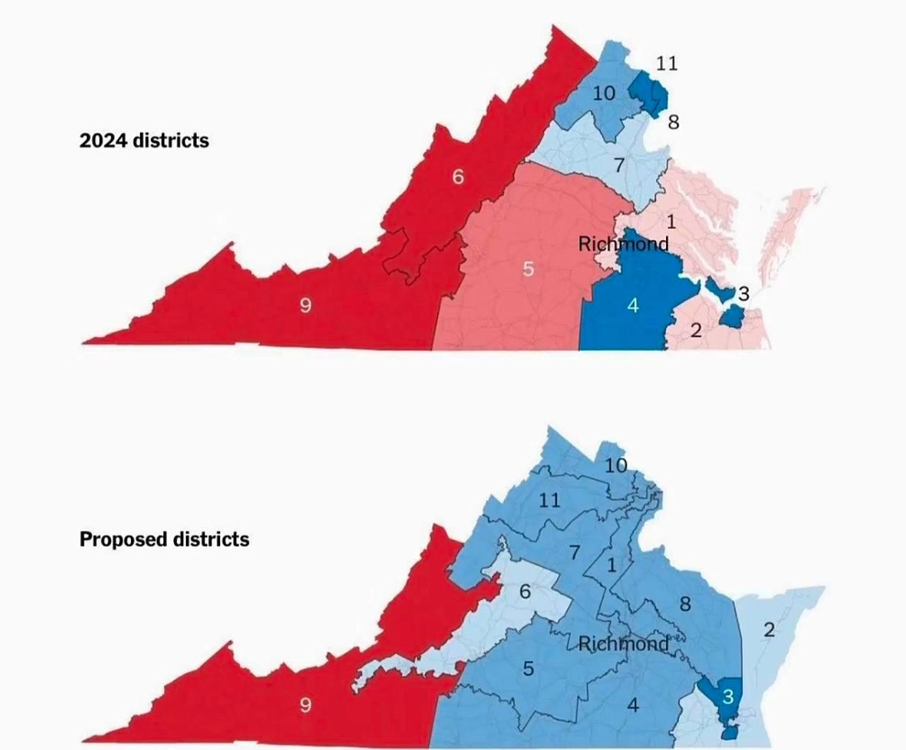 При взгляде на политическую картину США, легко заметить тревожную ситуацию для республиканцев. Штат Вирджиния провёл референдум, на котором решили перерисовывать округа в пользу Демпартии. Известно, что из имеющихся сейчас пяти республиканских округов в штате останется лишь один.