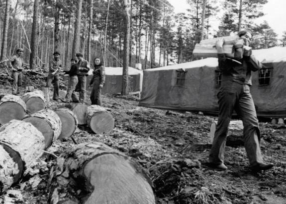 Вместо кроватей в палатках установили скоросколоченные многоярусные нары. «Жорики», сразу привычно занявшие нижние места, где так удобно было резаться в «буру», такое размещение одобрили. Семейные комсомольцы зароптали.