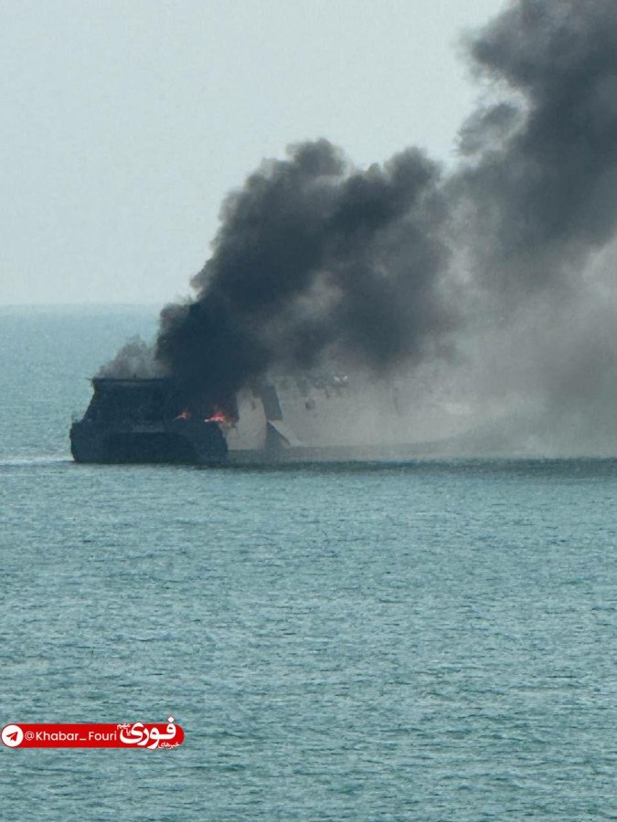 Военный эксперт приводит фотографию горящего иранского фрегата-катамарана. Вот, сами посмотрите, дымится и почти утонул.