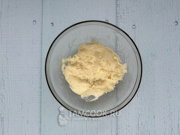 Возьмите мягкое сливочное масло, сложите в глубокую миску, добавьте сахар, ванилин, соль и хорошо разотрите.