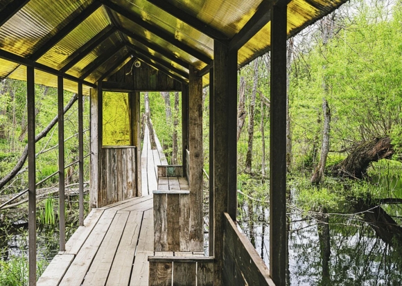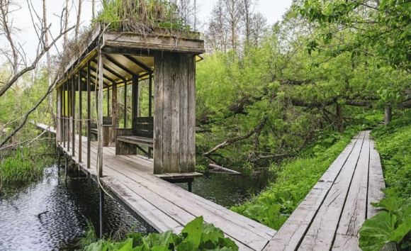 Некоторые тропинки Бродского петляют вдоль ручья и по лесу и заводят в тупики, другие выводят к арт-объектам. Почти в каждом из них, будь то Мост, Приют одинокого старца или Обсерватория, найдутся стул, плед, книги и печка-буржуйка – так создается ощущение убежища.