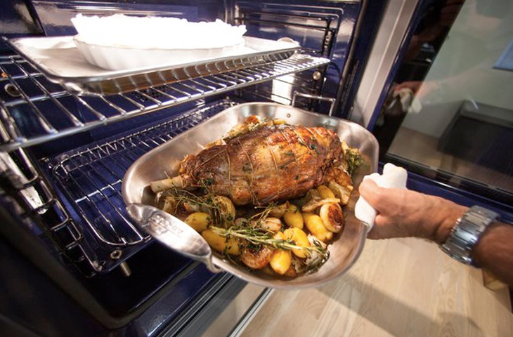 Переложить ногу на блюдо, накрыть алюминиевой фольгой и дать отдохнуть в теплом месте, по крайней мере 20 минут до нарезки. Если овощи не совсем размягчились, вернуть их в духовку и закончить приготовление.
