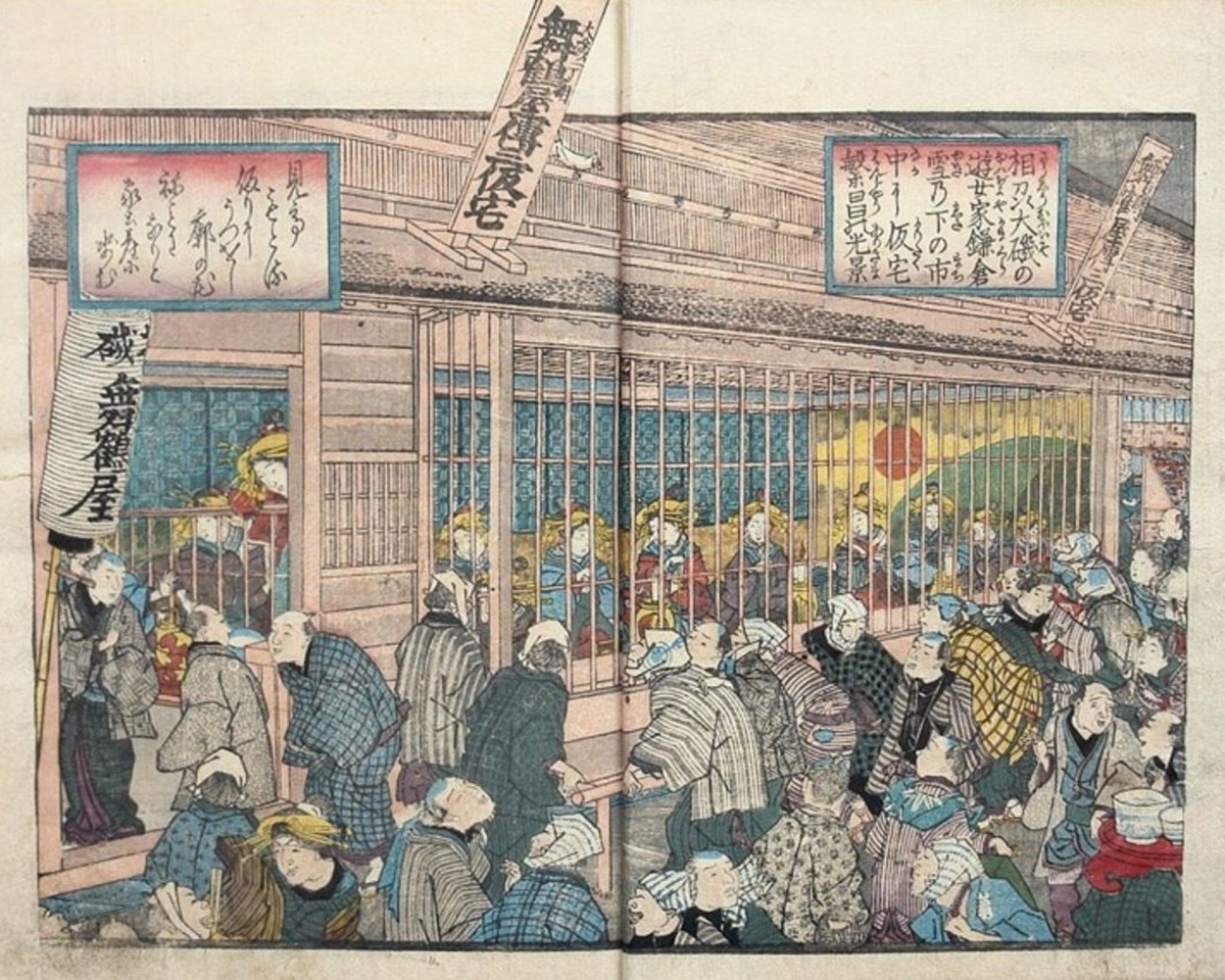 В квартале Ёсивара, известном своими борделями, существовал своеобразный обычай: женщин, занимавшихся проституцией, держали за деревянными решетками, чтобы клиентам было удобнее их осматривать. Эти "витрины", называемые "харимисэ", служили не только для привлечения покупателей ...