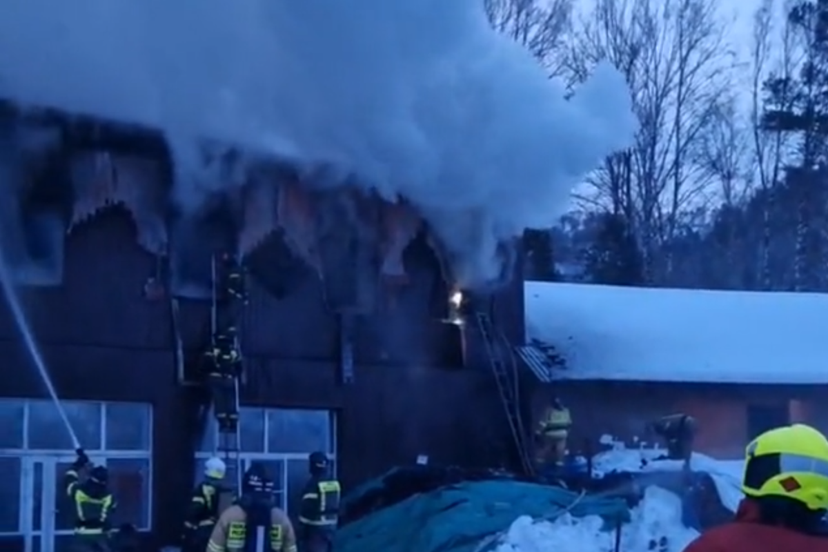 "Огнеборцы ликвидируют пожар на туристической базе "Юность", — говорится в заявлении.