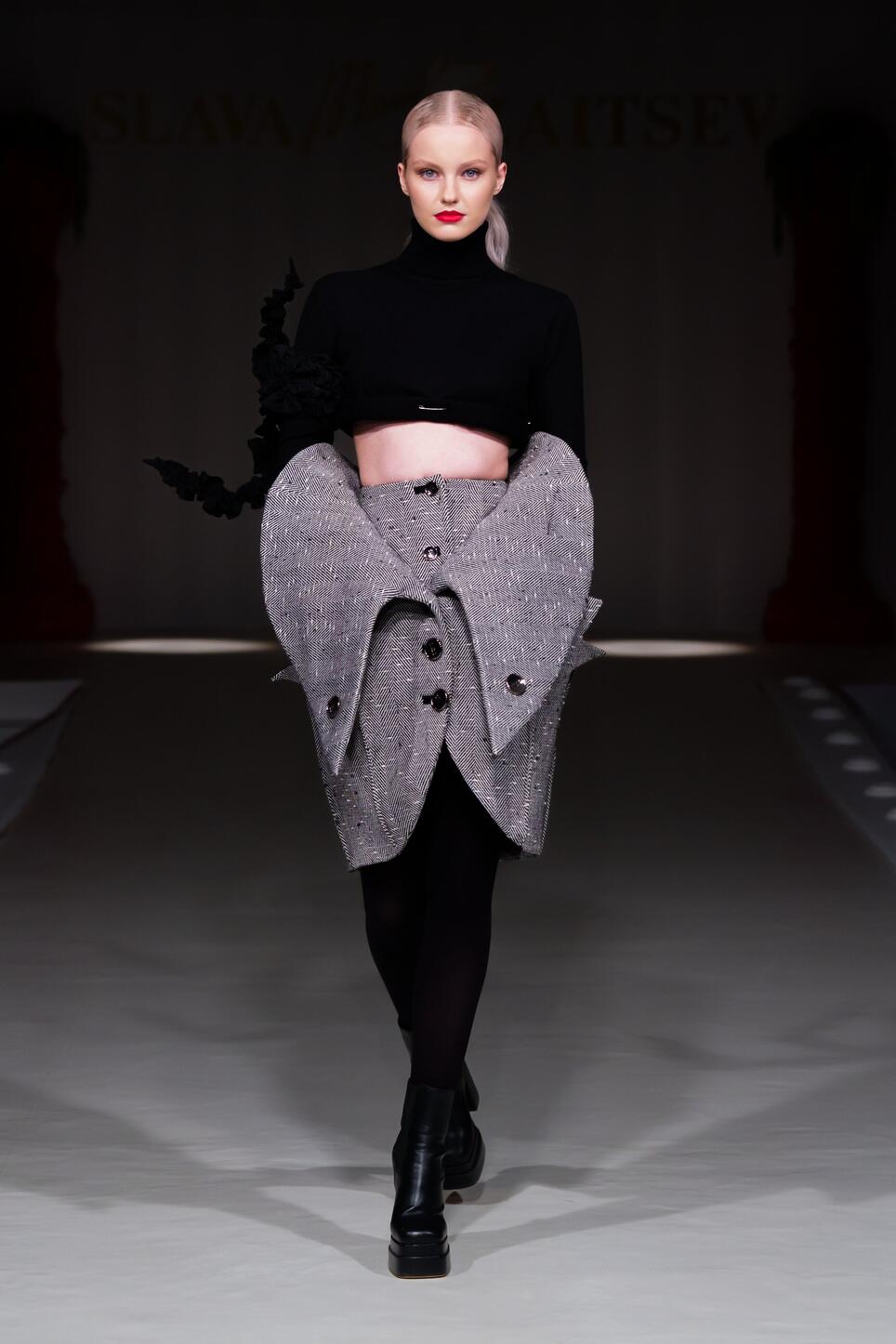 Модели Вячеслава Зайцева традиционно сочетают строгие классические линии с тенденциями современной моды, благодаря чему они идеально подходят как для повседневного образа, так и для торжественного или официального мероприятия.