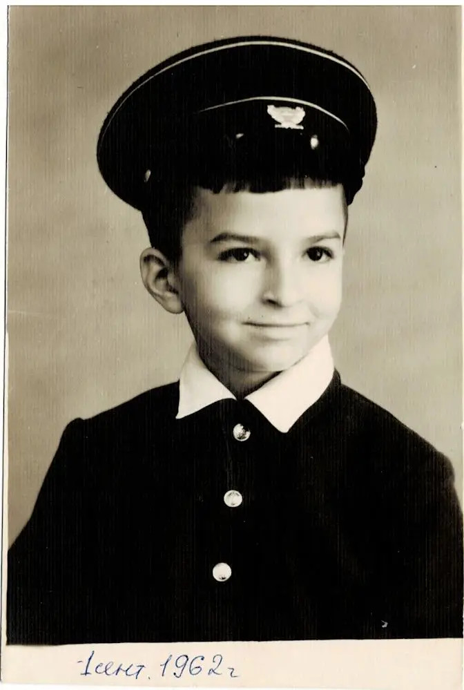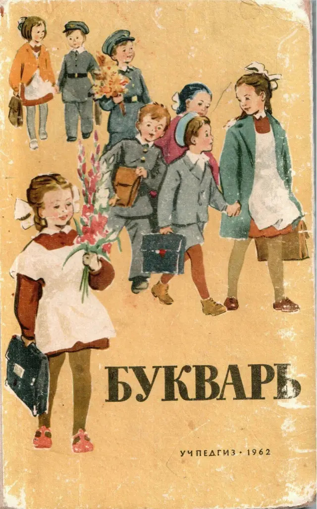 И началось мое ученье по букварю. Нужно было придумывать по первой картинке, как звали мальчиков и девочек, на ней изображенных. Потом что-то в этом же духе. Потом в тетради с разлинованными страницами карандашом мы выводили палочки. Потом на уроке арифметики пластмассовые палочки складывали в кучки. Ну, всё как в кинофильме «Первоклассница», снятом в 1948 году. Кстати, и форма у девочек оставалась такой же, как и в этом фильме. А вот у мальчишек там формы не было, зато она была у нас: гимнастерка и брюки навыпуск из серого сукна, ремень с латунной пряжкой и фуражка с лакированным козырьком, гербом и подбородным ремешком. Опять же практически такая же, как и у Пети из книги «Белеет парс одинокий» Катаева.