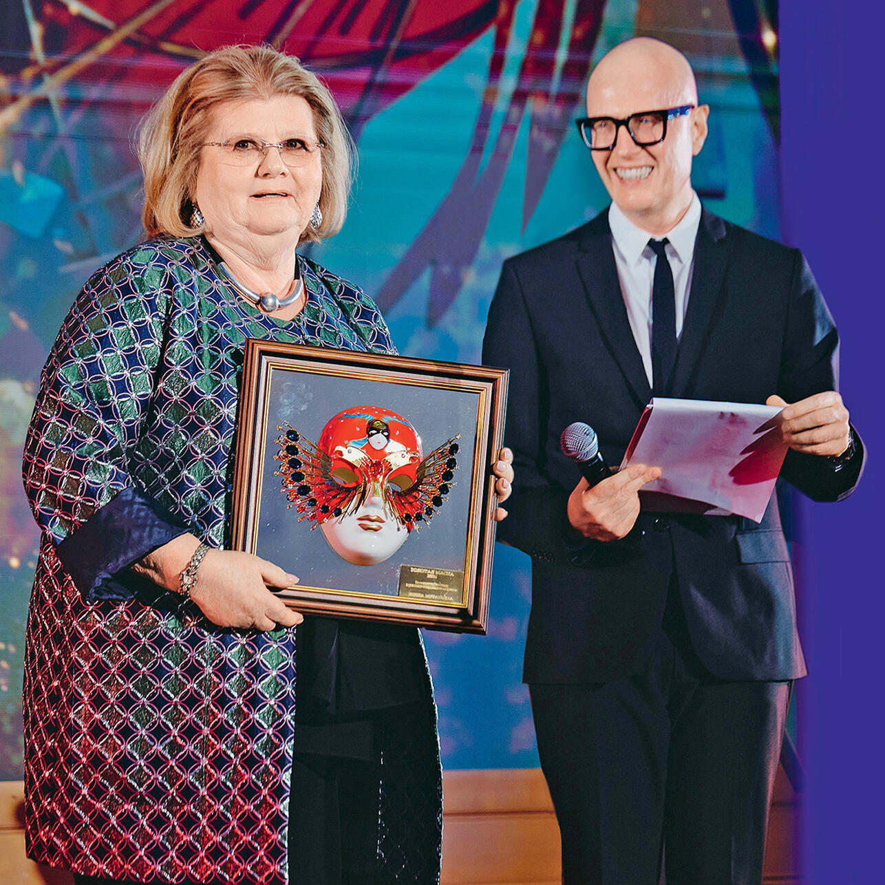 Лауреат специальной премии Ирина Муравьева и ведущий церемонии Вадим Верник Пресс-служба «Золотой маски»«Я хотела «Маску» все годы, но делала вид, что она мне безразлична, — призналась Ирина Муравьева на вручении специальных наград «Золотой маски» президенту премии Владимиру Машкову. — Когда уже забыла про это желание, тут ее и получила. Спасибо!» Фанни Ардан, которую отметили «За поддержку театрального искусства» наряду с главой Татарстана Рустамом Миннихановым и целым городом — Москвой, поблагодарила в видеообращении: «Войти в магический круг театральных деятелей — значит преодолеть все границы, говорить на одном языке».