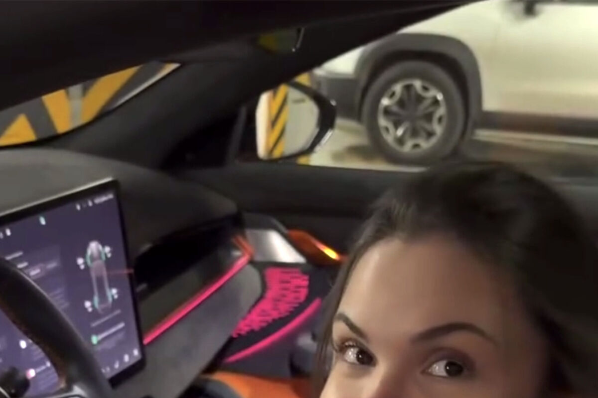 На записи слышно, как мужчина рассказывает своей жене о преимуществах автомобиля Zeekr 001, показывая при этом "мягкий" салон транспорта, но женщина все равно отказывается от подарка, выходит из иномарки и просит мужа продать автомобиль.