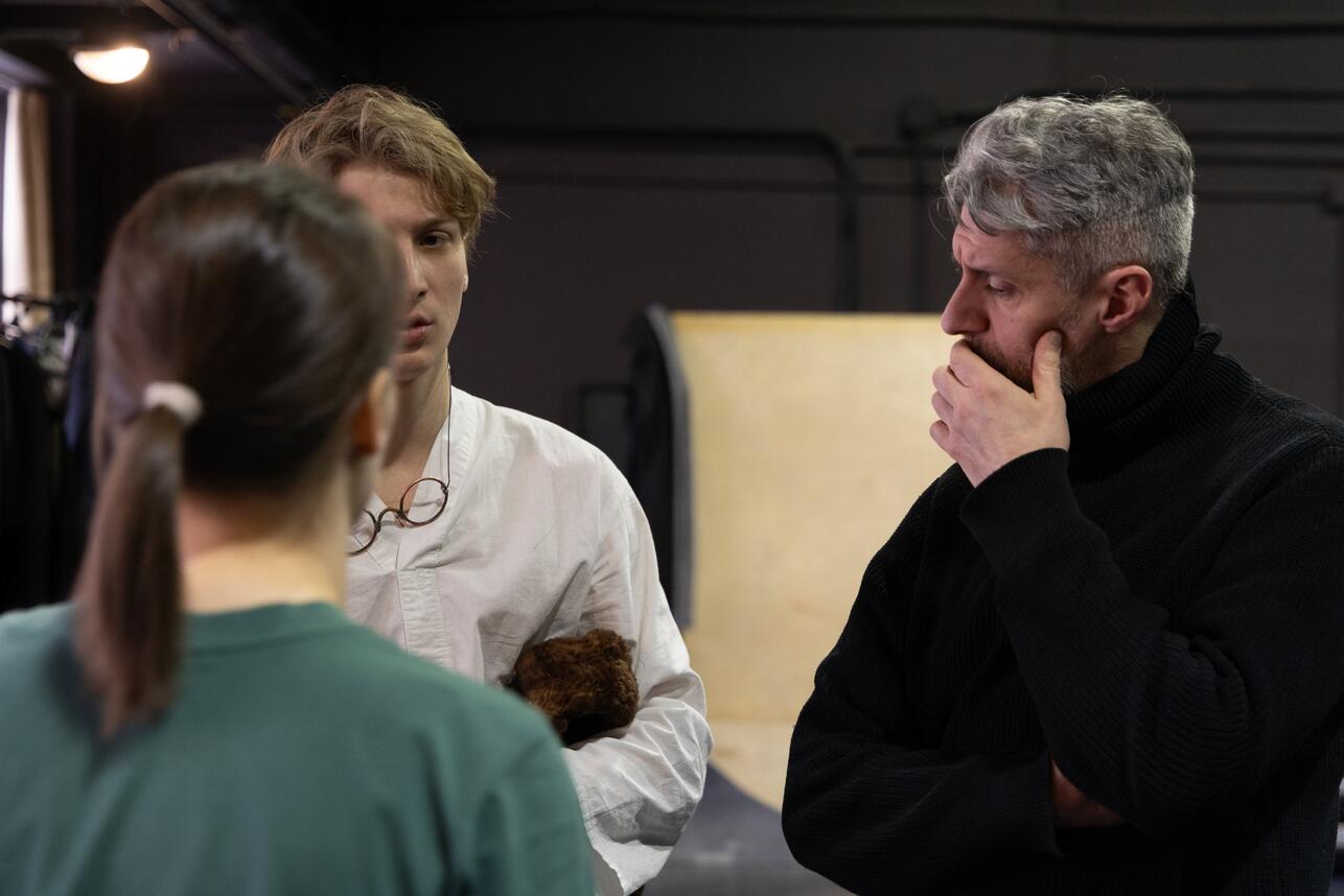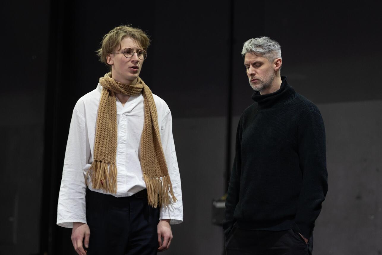 На репетиции предоставлено пресс-службой театра им. Вахтангова, фото Натальи ШорохСпектакль на Основной сцене (премьера 28 февраля и 1 марта) станет не просто возвращением к знаменитому сюжету, но и данью уважения традициям театра, основанного еще Евгением Вахтанговым, который мечтал о постановке «Гамлета», но не успел осуществить задуманное. За более чем вековую историю к драматургии Шекспира здесь обращались Николай Акимов, Борис Захава, Евгений Симонов*, Римас Туминас и Юрий Бутусов.