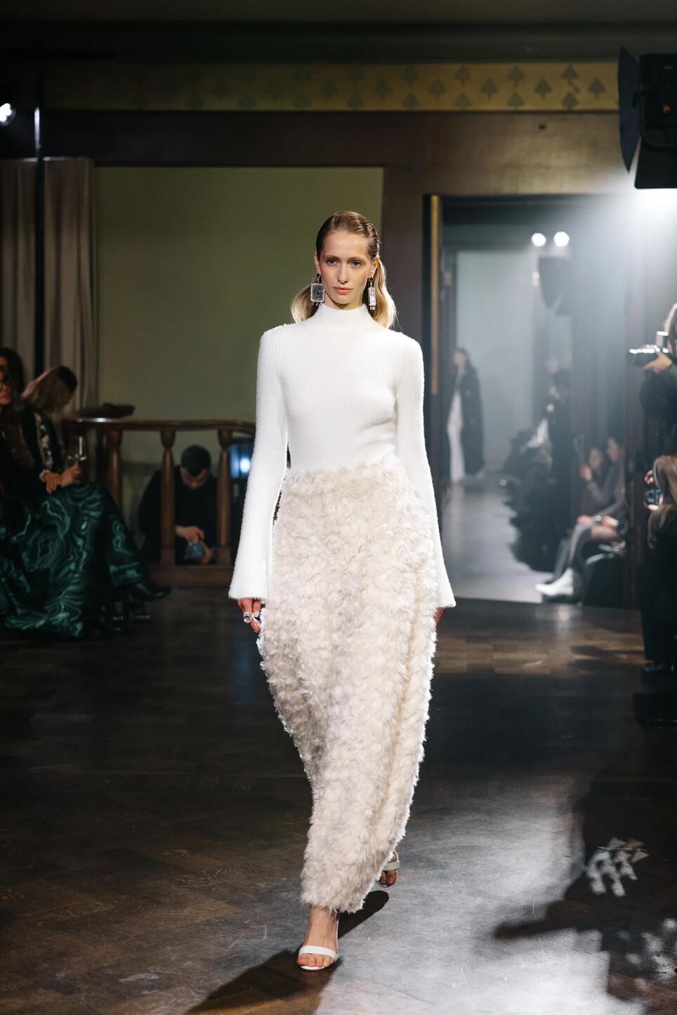 Ясмина Муратович предоставлено Пресс-службойСияние бриллиантов и драгоценных камней ювелирного арт-ателье интеллектуальных украшений Dzhanelli Jewellery стало одним из ключевых акцентов вечера. Ими были дополнены образы дизайнера Ольги Лефферс и моделей показа. Изысканные вина компании GreenLife гармонировали с эстетикой коллекции. Уникальные ароматы бренда Tea Art погрузили гостей особняка в атмосферу магического леса.