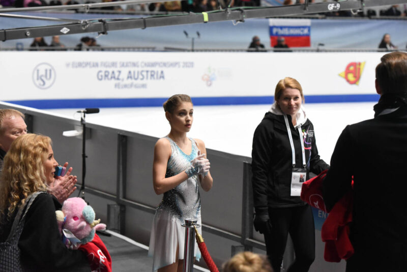 Постоянное обсуждение окружающими её прошлого, особенно серебра Олимпиады 2018 года, лишь усугубляло внутреннее состояние Жени. «Если бы не было травм, то она могла победить. Но девочка продолжает пахать. Она пашет и пашет до сих пор. Когда есть желание, можно с последнего места подняться на первое, но нужно работать в пять раз больше, чем работал до. Можно с пола, со дна подняться, когда кажется, что все рассыпалось», — анализировала ситуацию Ирина Слуцкая в шоу «Антонимы».