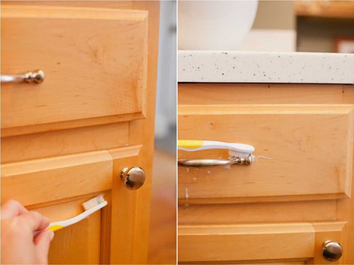Также многие хозяйки во время уборки забывают про ручки шкафов, бытовой техники и дверей. И всё бы ничего, но эти места мы трогаем чаще всего, практически ежедневно: открываем шкафы мокрыми руками, хватаем дверцу холодильника после готовки, берёмся за ручку духовки, не успев вытереть пальцы. Всё это постепенно накапливается, делая поверхность липкой, а на свету ещё и бросается в глаза, особенно на глянцевой поверхности, создавая ощущение неопрятности. Чтобы избежать подобных казусов, стоит протирать ручки хотя бы раз в два-три дня. Для этого можно воспользоваться мягкой тканевой салфеткой и универсальным моющим средством, или же раствором тёплой воды с парой капель столового уксуса и жидкого мыла. Такой состав отлично справляется с жиром, не оставляя разводов.
