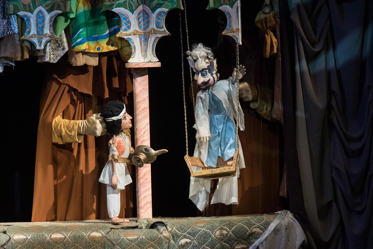 Спектакль «Волшебная лампа Алладина!» Предоставлено Пресс-службойЖемчужина «золотого фонда» Театра Образцова – спектакль по мотивам арабских сказок из сборника «Тысяча и одна ночь». Это был первый спектакль для взрослой аудитории, поставленный в Театре Образцова. «Волшебная лампа Аладдина» имела оглушительный успех и до сих пор не сходит с афиши театра. В прошлом году спектакль отметил 85-летний юбилей! Также это был первый спектакль, сыгранный тростевыми куклами.