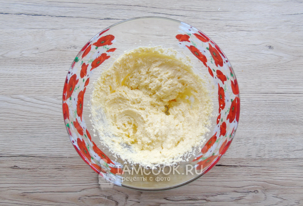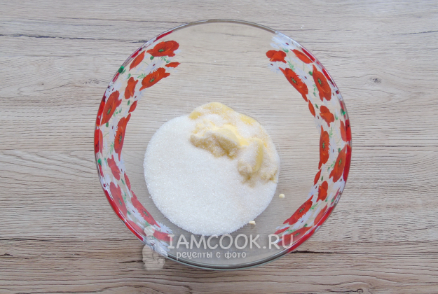 Мягкое сливочное масло поместите в миску и насыпьте сахар.
