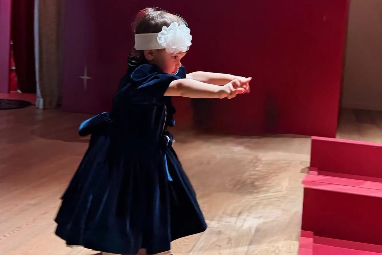 На днях Татьяна вместе с детьми побывала на новогоднем представлении, которое устроил один из московских досуговых клубов. Для дочери она выбрала нарядное бархатное платье.