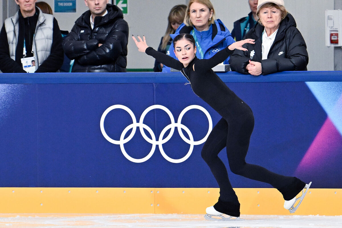 Российская фигуристка Аделия Петросян провела последнюю тренировку перед произвольной программой на Олимпийских играх в Италии.