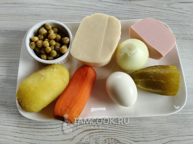 Если у вас осталась мисочка Оливье, хоть с заправкой, хоть без, вы сократите время приготовления. Мне же пришлось сделать небольшую порцию.