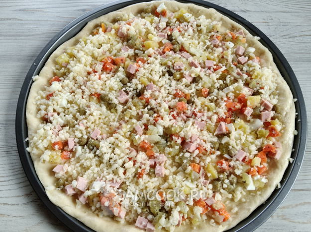 Пицца «Оливье» готова.