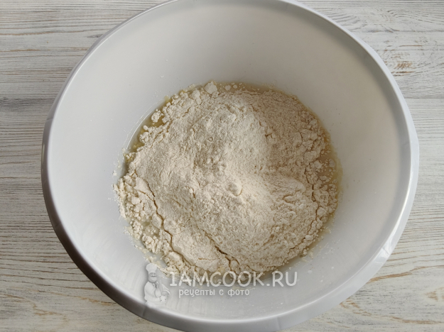 Чтобы приготовить пиццу «Оливье», сначала надо замесить тесто.