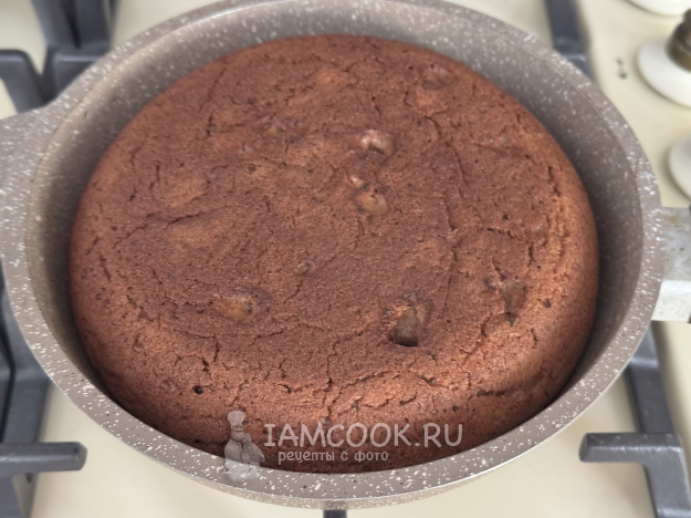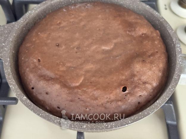 Закрыть сковороду крышкой, поставить на минимальный огонь и выпекать пирог с Нутеллой на сковороде минут 15.