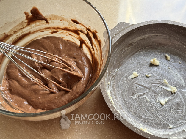 Перемешать тесто до однородного состояния. Сковороду диаметром 18 см смазать маслом.