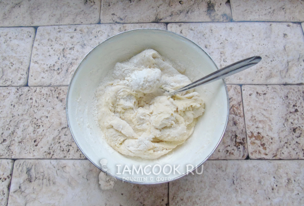После выложите на стол, присыпанный мукой, и замесите эластичное и мягкое тесто.