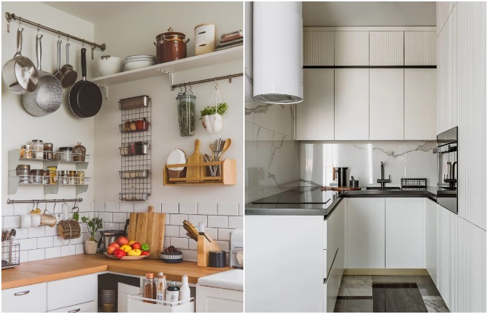 Пожалуй, самый популярный и актуальный прием для маленьких кухонь – оформить интерьер в светлых оттенках. Используйте белый, кремовый, светло-серый, нежно-голубой, мятный и прочие цвета. Можно их скомбинировать, чтобы обстановка получилась более динамичной и привлекательной. Также можно добавить глянцевых поверхностей, которые будут отражать свет и, тем самым, визуально увеличивать пространство комнаты.