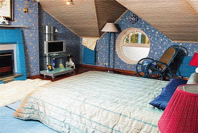 Столовая залита светом благодаря огромному окну, а пол выложен практичной каменной плиткой. В гостиной, напротив камина, расположился внушительный кожаный диван, приглашающий к отдыху. Спальни также отличаются друг от друга, каждая имеет своё настроение и уникальный стиль.