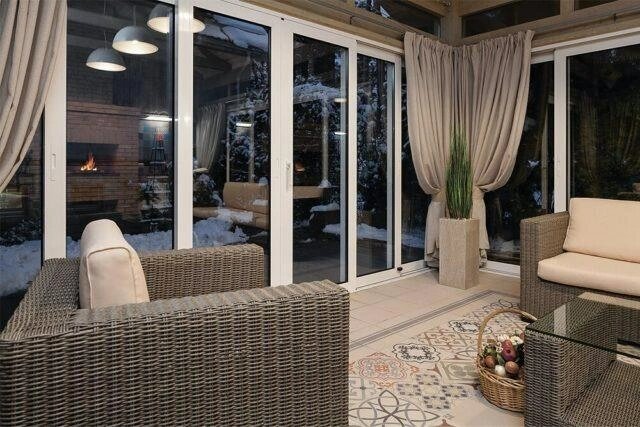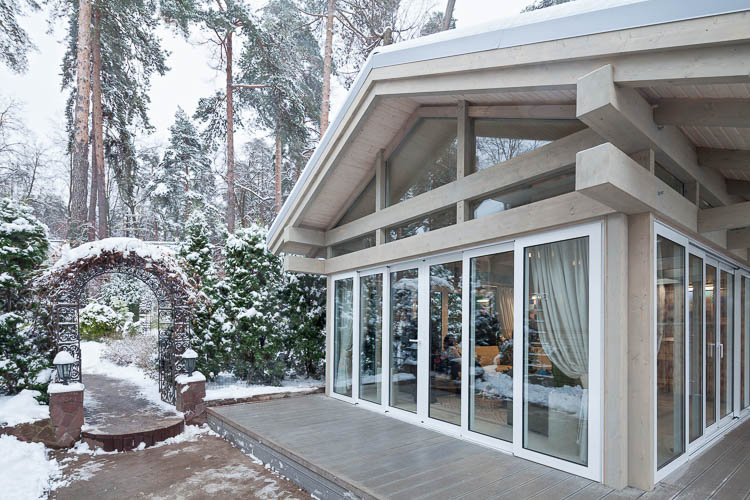 Внутри особняка предусмотрено всё для максимально комфортной жизни: бильярдная, уютный бар, наполненный светом зимний сад и несколько спален. Пространства здесь более чем достаточно, что позволило разделить обязанности по оформлению. Лев Валерьянович взял на себя кабинет, бар и бильярдную, в то время как Ирина занималась созданием атмосферы на кухне, в гостиной и спальнях.