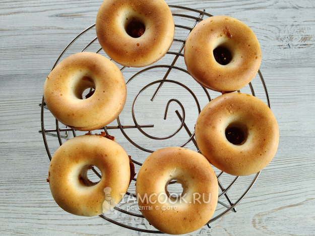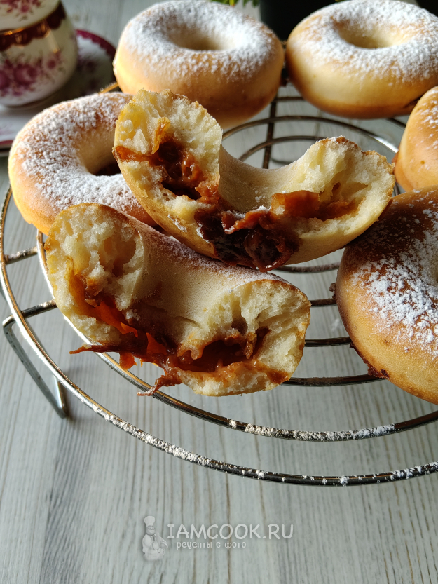 Пончики с карамелью выпекать при температуре 170 градусов 20 минут.