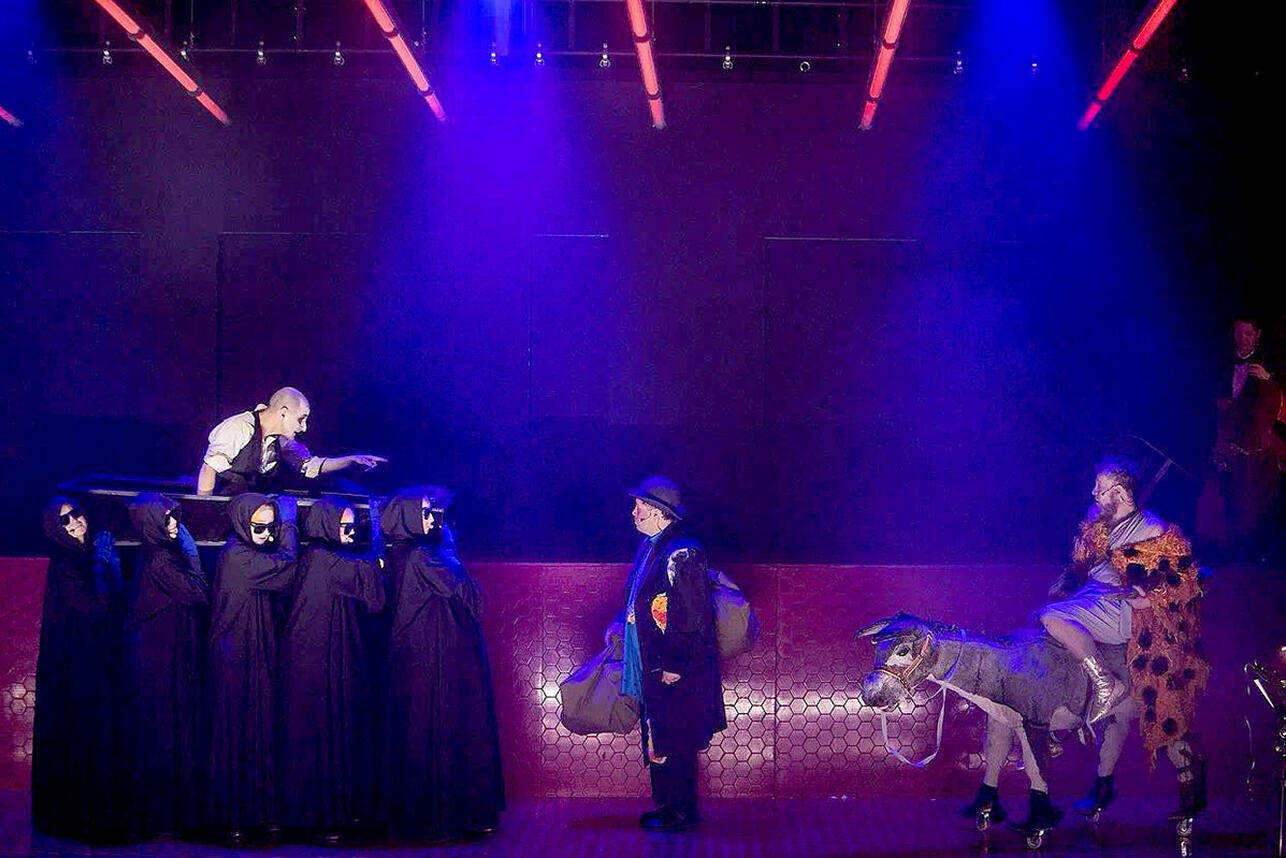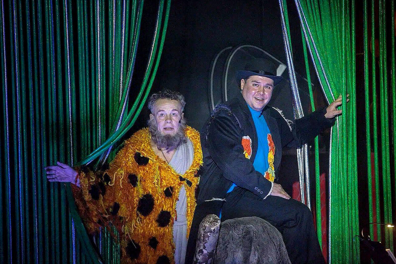Олег Курлов (Дионис), Игорь Назаренко (Ксанфий) Галины ФесенкоЗал ликовал от интерпретации классического произведения под современность, сохранившей при этом всю яркость и остроумность оригинала. Энергия и харизма актеров просто завораживает! А автор инсценировки Василиос Самуркас рассказал о процессе создания спектакля и его вдохновениях. Его видение комедии добавило свежести и оригинальности, что сделало постановку по-настоящему уникальной.