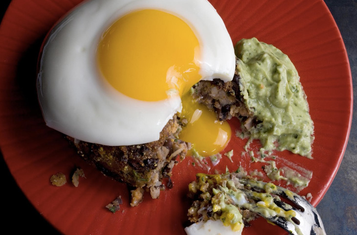 Яйцо с котлетой из черных бобов