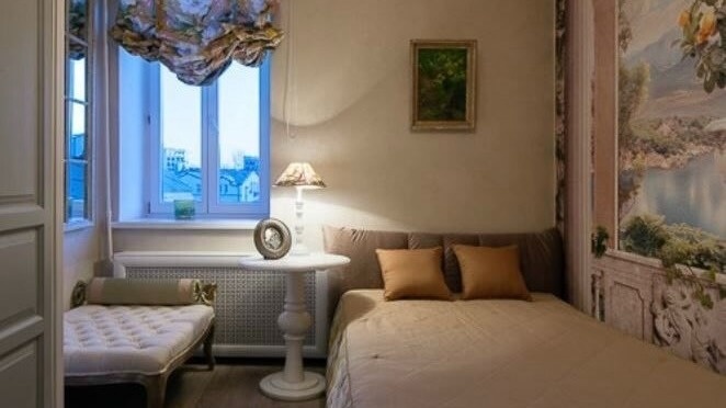 Изящный туалетный столик и тахта у окна в спальне Ирины Алфёровой