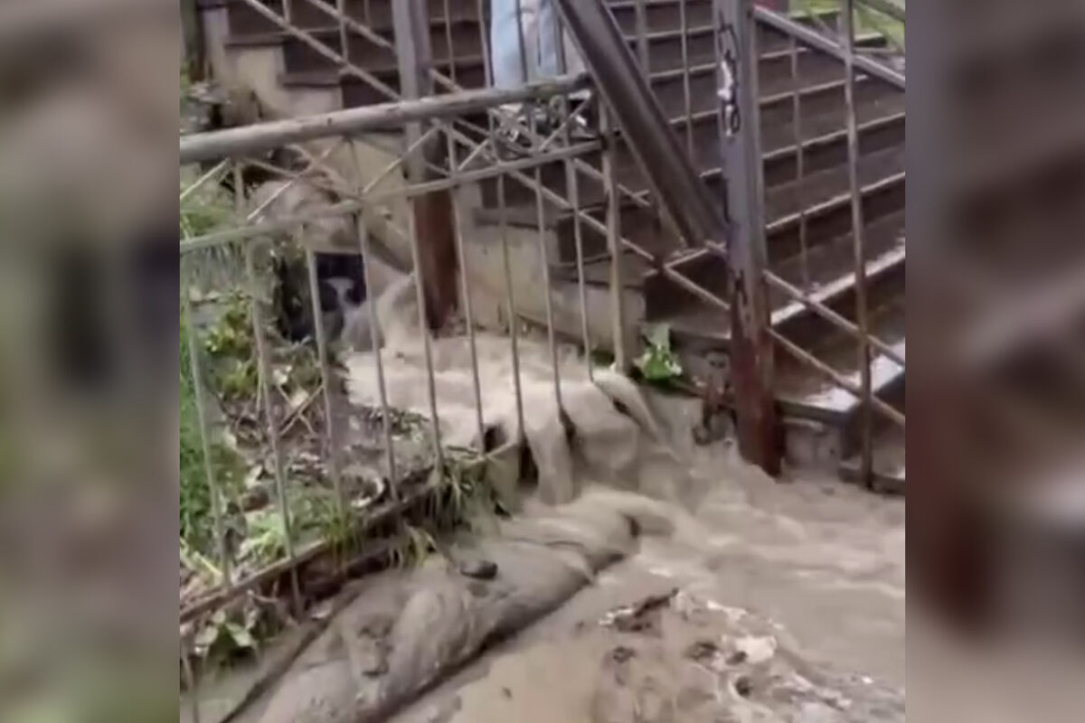 На кадрах, опубликованных прокуратурой Санкт-Петербурга, поток грязной воды протекает через решетку ограждения метрополитена и вытекает в проход к станции. Граждане, направляющиеся в сторону входа, пытаются переступать через него, но ширина потока не позволяет это осуществить в полной мере.