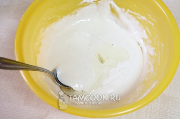 Добавляем к массе растительное масло, ещё раз перемешиваем.
