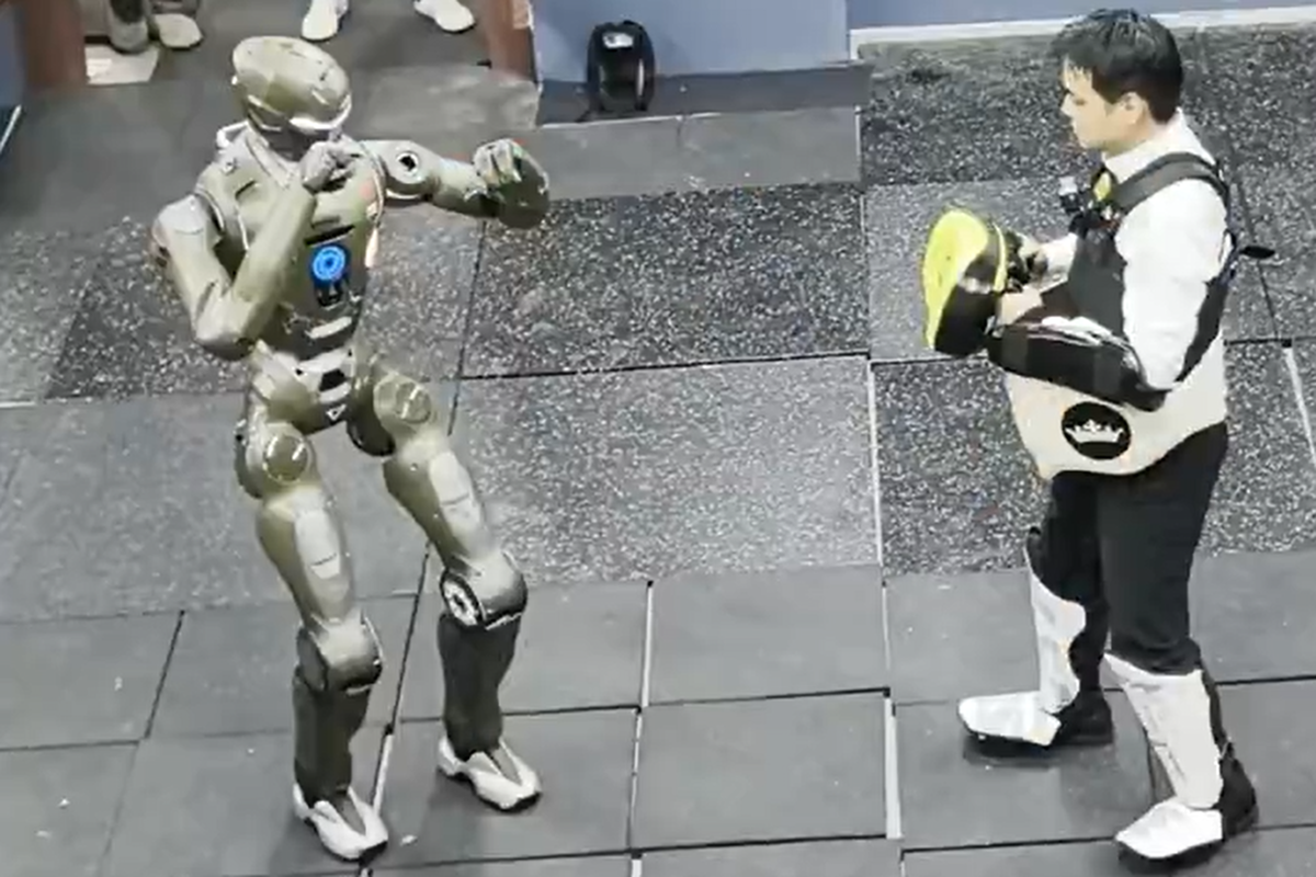 Генеральный директор китайского робототехнического стартапа EngineAI Чжао Тонъян продемонстрировал боевые возможности человекоподобного робота T800, лично приняв участие в тесте. Руководитель компании вышел на ринг в защитном снаряжении и принял на себя удар от робота, сообщает "Хабр".