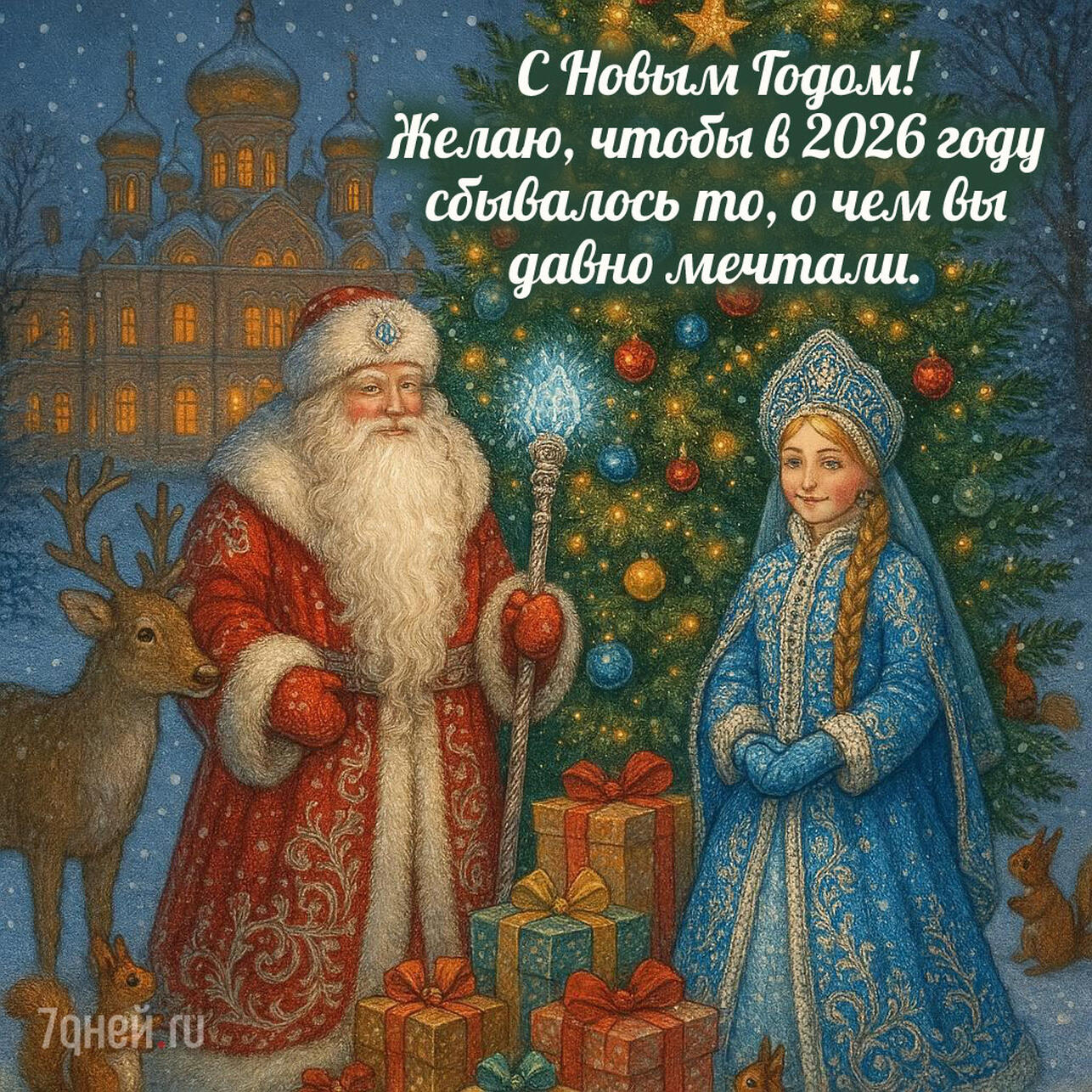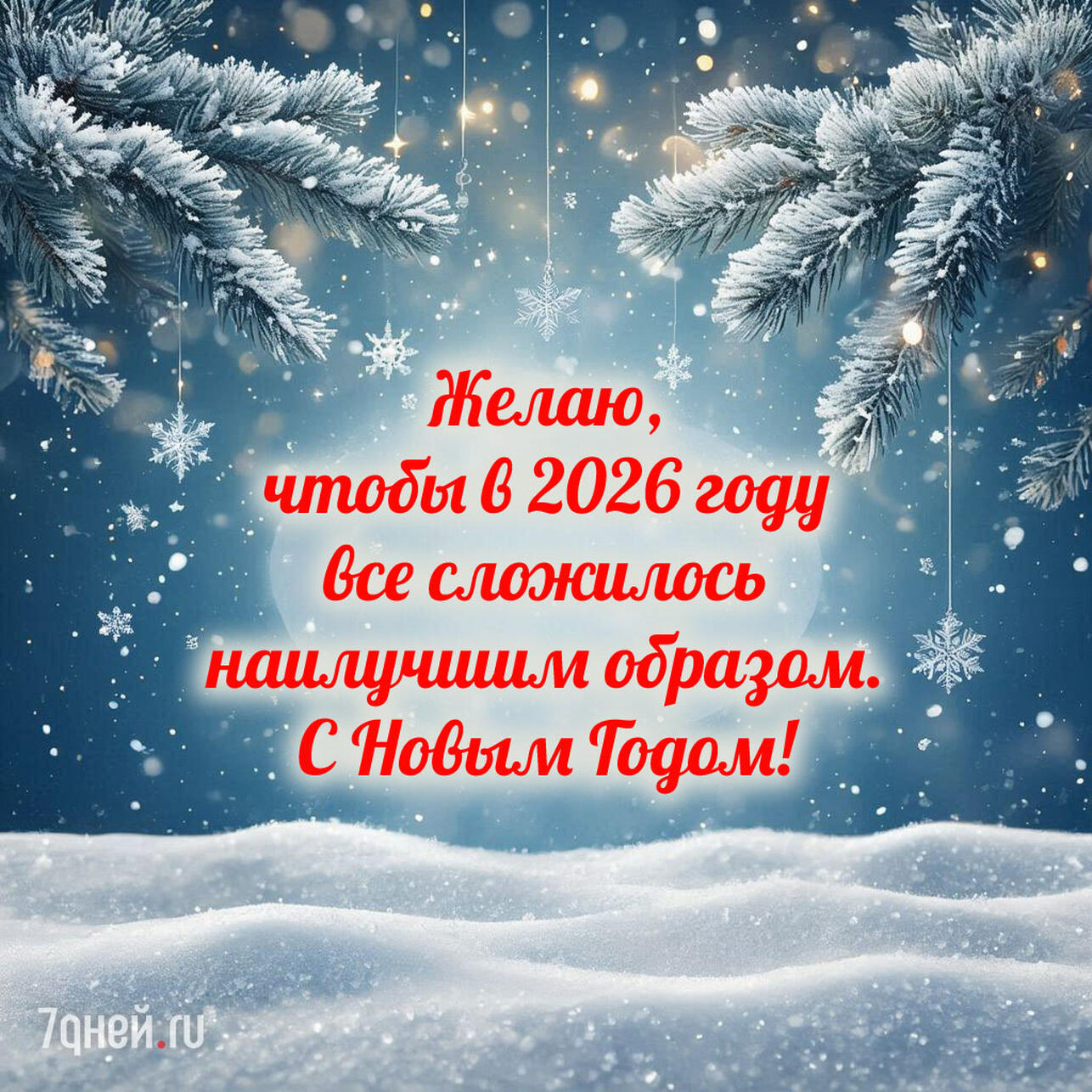 Мы подготовили подборку из 30+ открыток с теплыми, добрыми и универсальными пожеланиями. Их удобно отправлять друзьям, родным, коллегам и всем, кого хочется поздравить с наступающим 2026 годом.