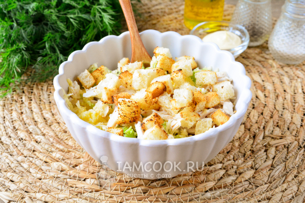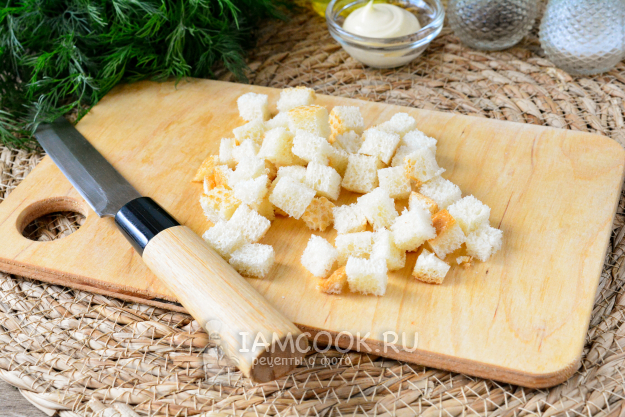 Румяные хрустящие сухарики добавьте в салат.