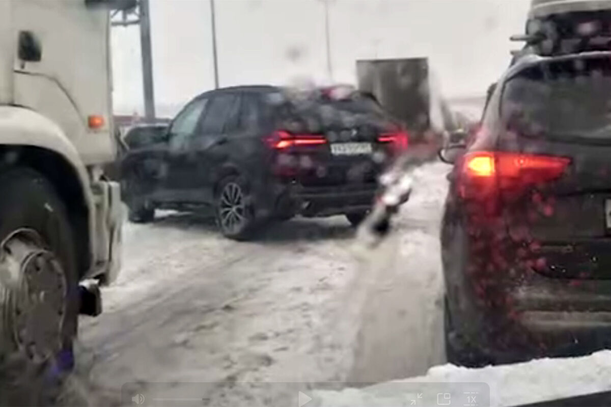 Длинная пробка образовалась на федеральной трассе М-11 "Нева" в направлении Санкт-Петербурга из-за дорожно-транспортного происшествия с участием грузового автомобиля. Об этом сообщает Telegram-канал SHOT.
