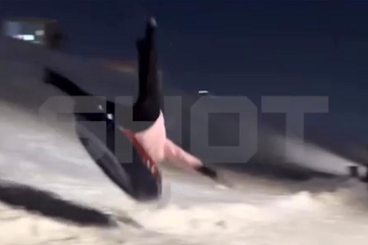 Инцидент произошел, когда девушка катилась с горки на "ватрушке". На большой скорости она наехала на трамплин, слетела с тюбинга и с силой ударилась о землю. Этот момент попал на видео.