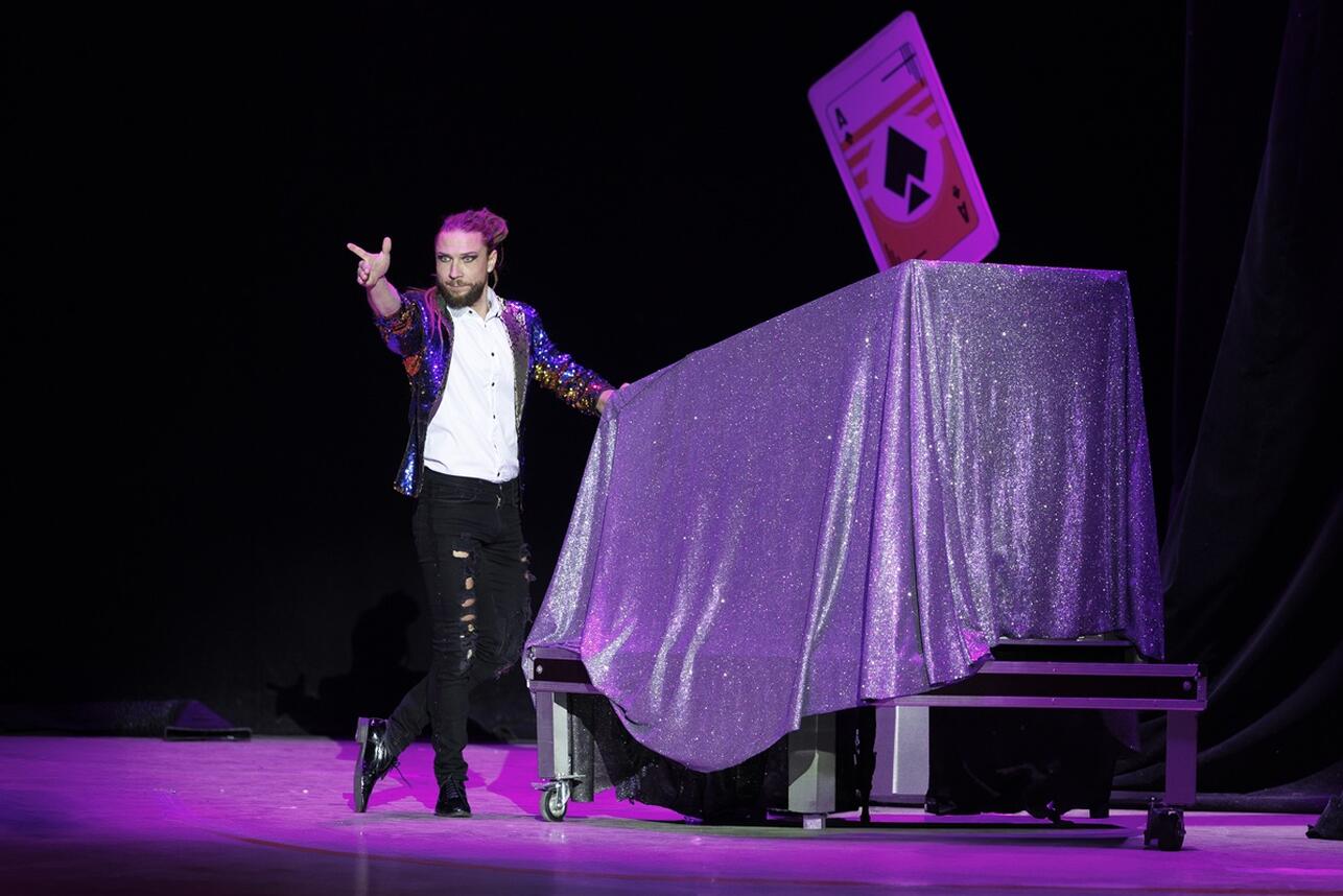 На сцене гармонично сойдутся классические иллюзионные аттракционы и современное искусство, метаморфозы и трансформации, воздушные гимнасты, жонглеры и эквилибристы, а настоящий конферансье в окружении кордебалета приоткроет завесу тайны лучшего бродвейского шоу.
