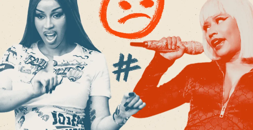 ЭТОЙ ОСЕНЬЮ в заголовках газет вновь вспыхнуло напряжение между Карди Би и Ники Минаж (Cardi B and Nicki Minaj), но, хотя в Интернете они часто обменивались колкостями, официального обмена песнями не было. “В отношениях Ники и Карди есть доля ”ты мне не нравишься". Они просто не нравятся друг другу", - отмечает Маркман.