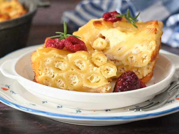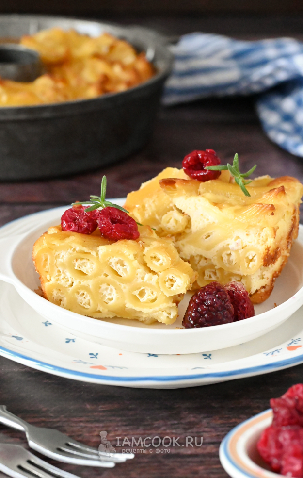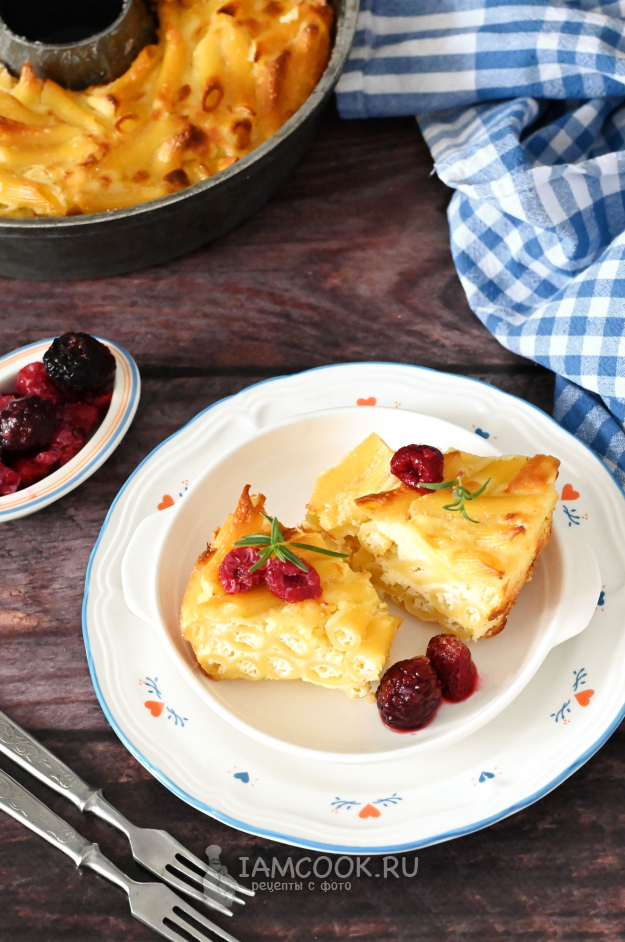 Готовую сладкую бабку из макарон достаньте из духовки, дайте ей отдохнуть 5-10 минут, затем нарежьте на порции и подавайте к столу.