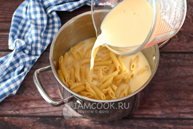Влейте получившуюся смесь в макароны.
