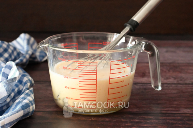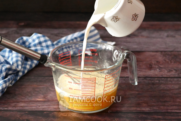 Смешайте яйца с молоком до однородности и растворения сахара.