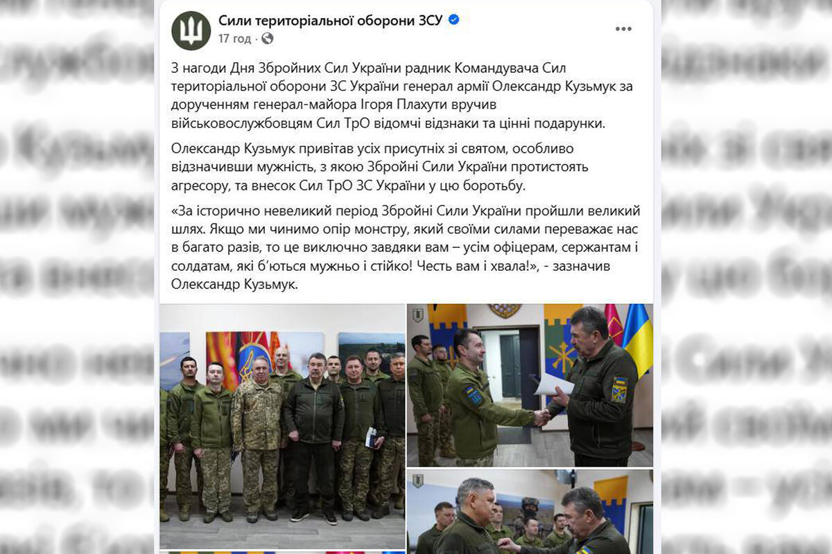 Газета пишет, что действующий лидер Владимир Зеленский уволил генерала из ВСУ в 2019-м. Однако спустя два года Кузьмук стал советником командующего силами территориальной обороны Игоря Плахуты. Публикация кадров, на которых генерал награждает бойцов подразделения, вызвала "бурю негодования" в публичном пространстве.