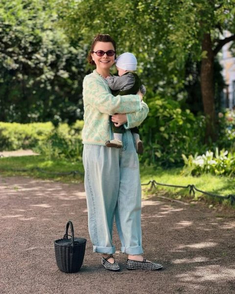 Публикацию сопроводили и кадры с наследниками. Верная своей привычке, Брухунова не показывает лица детей, поэтому Ваган и Матильда запечатлены на фото со спины. На одном из снимков брат с сестрой идут по коридору теплохода, с любопытством разглядывая его убранство. Для речной прогулки Вагану выбрали зеленый спортивный костюм, а маленькой Матильде — нежное бело-розовое платье с чепцом.