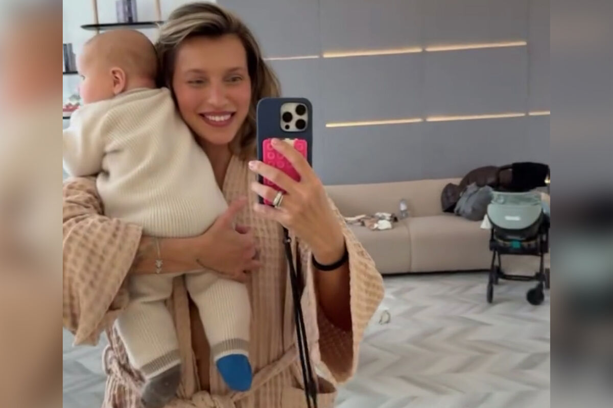 Телеведущая Регина Тодоренко показала своего двухмесячного сына. Звезда приехала с ребенком на съемочную площадку. Она позировала с Федором перед зеркалом и опубликовала видео в Instagram.