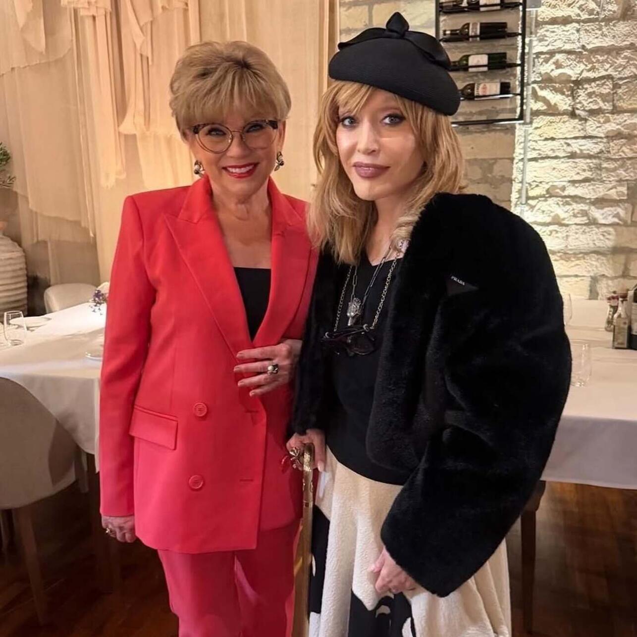 Пугачева опубликовала снимок, на котором она позирует в шубке из искусственного меха от Prada, длинной юбке с графическим принтом и черной аккуратной шляпке. Хотя певица и передвигается теперь только с тростью в руках, она всем своим видом демонстрирует, что еще даст любому форму. Звезда эстрады затмила даже саму именинницу, представшую на фото в брючном костюме цвета фуксия.