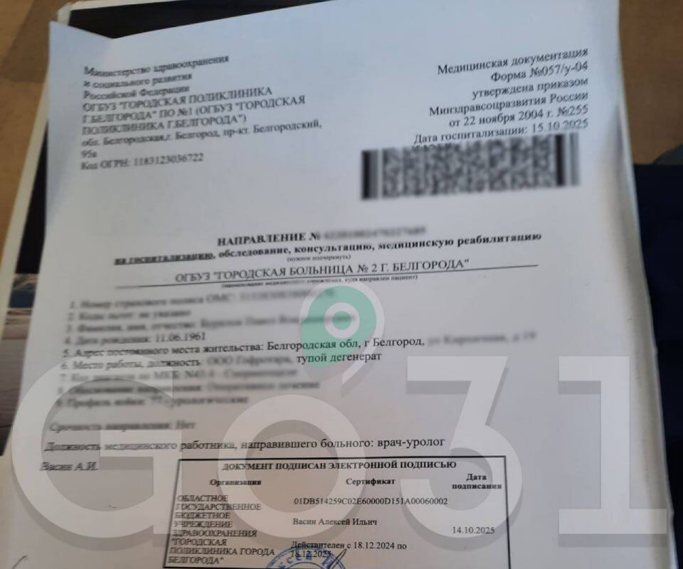 В Белгороде в карте пациента появилась надпись: "тупой дегенерат". Об этом сообщает "Медицинская Россия" со ссылкой на местное издание.